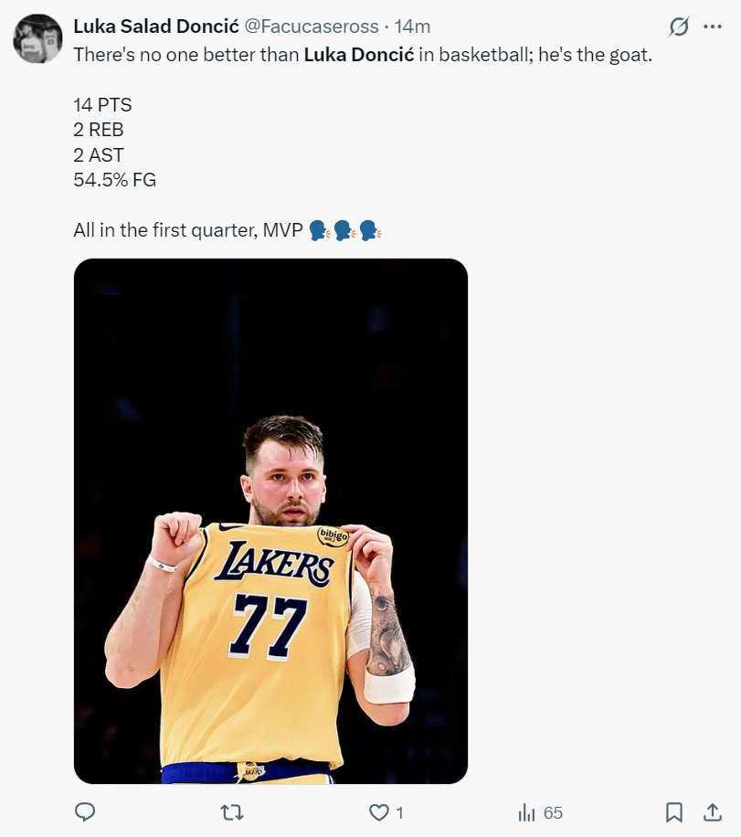 东契奇再度拿到30+5+5的数据已经是湖人队史第三多,赛后斯利普-贝勒斯吐槽东契奇:最后拒绝投空位三分是因为他知道自己三分太差,但为什么没人提及这一点?