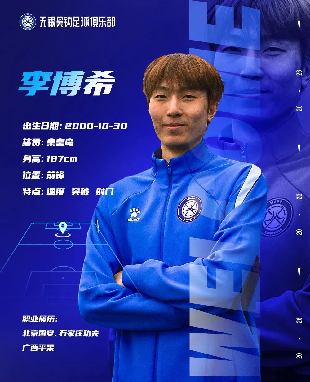 “感谢无锡吴钩给予我展示自己的平台。我渴望在新的环境中继续成长,用进球回报教练和球迷的信任。我会全力以赴,为无锡而战!”